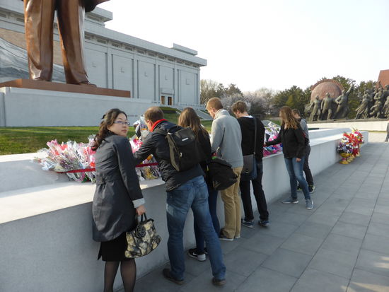 „Wir stellen uns in einer Reihe auf und verneigen uns“. So ungefähr lauten die übersetzten Worte unserer englisch sprechenden Reiseführerin Frau Li. Schneller als gedacht holt mich also die nordkoreanische Wirklichkeit ein.