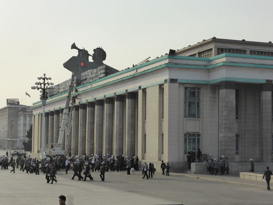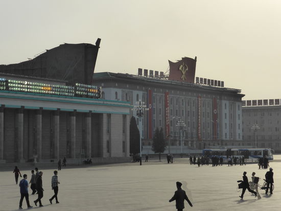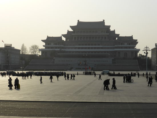 Wenn es so etwas wie ein Zentrum in Pyongyang gibt ist es der riesige Kim Il-Sung-Platz, den Tagesschau-Guckern bestens bekannt durch die riesigen Aufmärsche und Paraden, die dort regelmäßig abgehalten werden. Der ist unsere nächste Station.