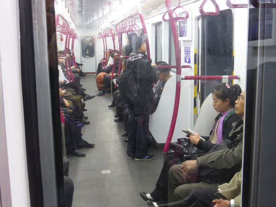 Es ist gerade Rush-Hour und die ankommenden Waggons spucken Menschenmassen aus, viel weniger steigen ein, ein Zeichen, dass es an dieser Stelle wohl oberirdisch besser weitergeht und wir uns irgendwo im Stadtzentrum befinden (Richtig geraten, in der Nähe befindet sich der Bahnhof, stelle ich später fest).
