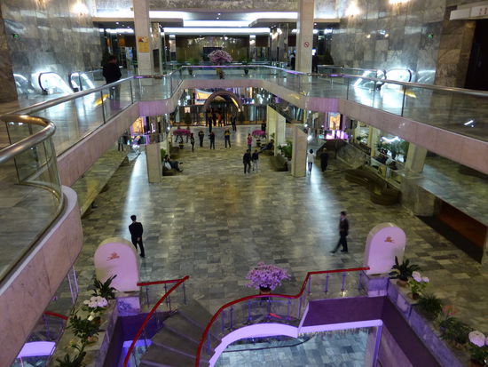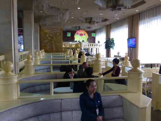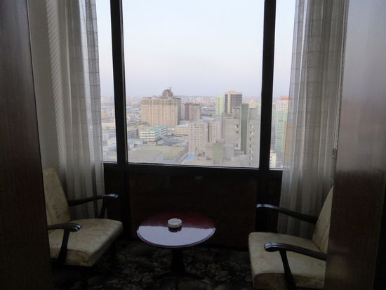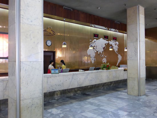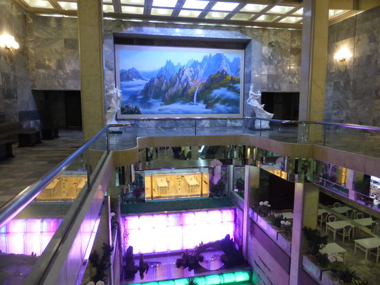 Ich residiere in einem der beiden großen, sehr imposanten Touristenhotels, dem Koryo Hotel. Vor neun Monaten wurde es von einem Feuer in einem der oberen Stockwerke heimgesucht. Seitdem ist der Übergang zwischen den beiden Zwillingstürmen -und wohl auch noch einiges andere- nicht mehr benutzbar. Mit der Reparatur und Renovierung ist das hier so eine Sache.