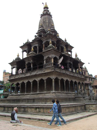 Einen Tag verbrachte ich also in Patan, war dort am Durbar Square und im Museum (welches von Österreich gesponsert wurde). Und hab dann hier im Restaurant auch mal Zwischendurch was anderes gegessen, denn immer nur Reis mit Linsen ist recht langweilig. Den Königspalast hier sind sie gerade am Renovieren, aber man konnte trotzdem in den Innenhof rein.