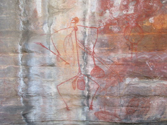 Nach einem gelsenfreien Morgenkaffee in Jabiru geht es weiter nach Ubirr, der Grenze zum Arnhem Land und ein "Saltie"-Hotspot. Das Highlight von Ubirr sind aber natürlich die uralten Felsmalereien der Aboriginees.