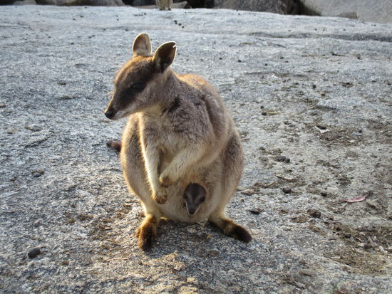 Danach drehen wir eine kleine Runde in den südlichen Tablelands und checken schon zu Mittag beim Granit Gorge ein. Das ist eine kleine private Gorge mit einem kleinen Campingplatz und vielen Tieren - wir hatten davon als Geheimtipp gehört und wir wurden nicht enttäuscht. Aber seht selbst: