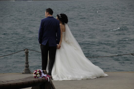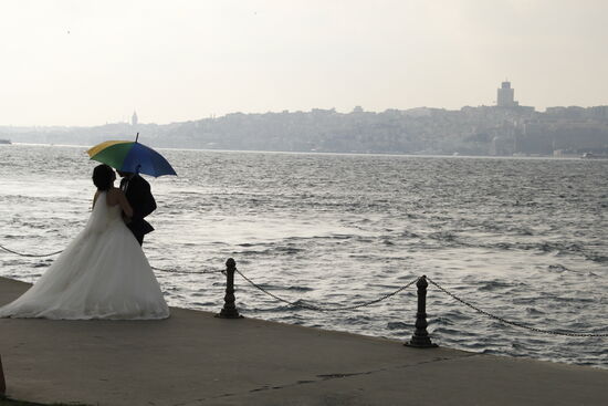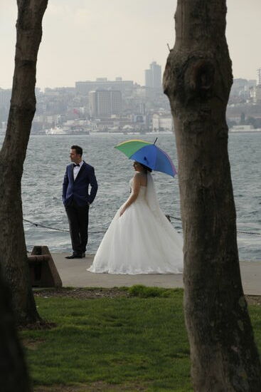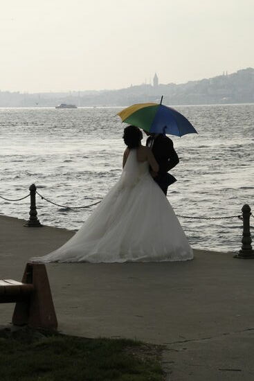 Gegen Ende unserer Strecke treffen wir sogar auf ein frisch vermähltes Ehepaar, das hier am Bosporus bzw. in dem kleinen Park daneben die Hochzeitsfotos macht!