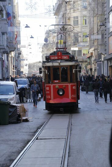 Wir sind mit der Tünel Bahn gefahren, das ist eine unterirdisch verlaufende Standseilbahn und dann ging es weiter mit der Straßenbahn.