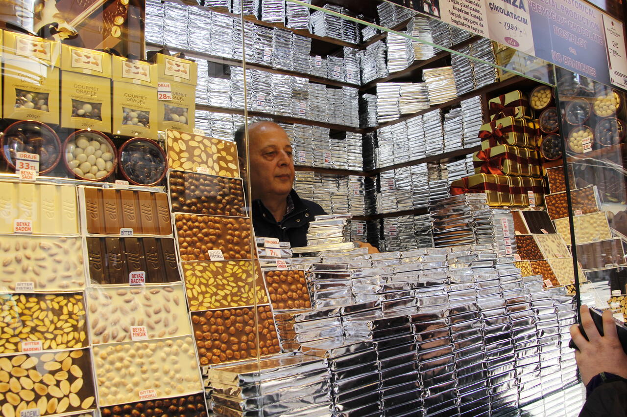 Zu Fuß sind wir dann zurück durch den Bezirk Galatasaray, hier kann man überall gut einkaufen, und wir sind auch zu dem berühmten Schokoladen Eck-Shop von Beyoğlu Çikolatacısı.