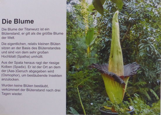 Wir wissen natürlich zunächst einmal nicht, was ein Titanwurz ist. Da hilft eine Tafel weiter: