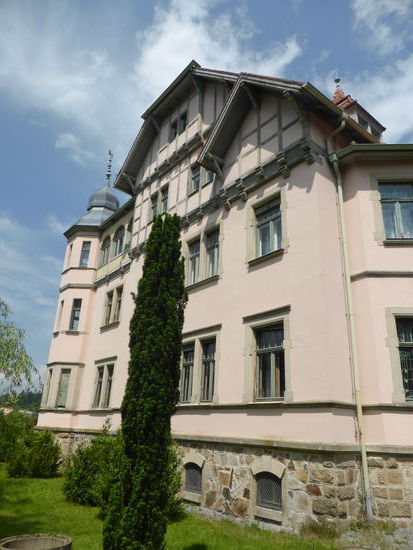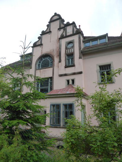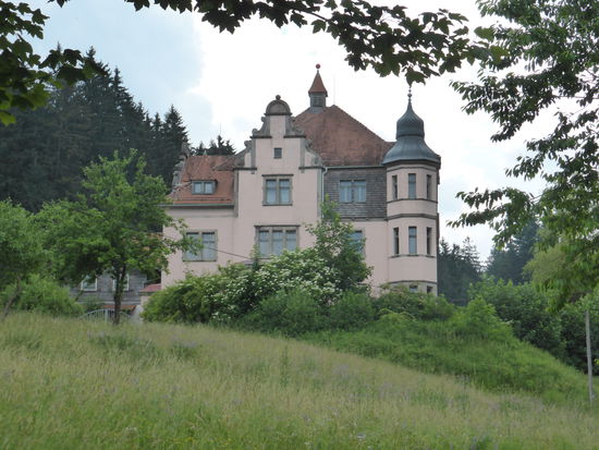 Und danach geht es dann wirklich zu unserem ersten heutigen Ziel, dem Märchen- und Gespensterschloß in Lambach nur einen Steinwurf von der Tschechen- Grenze entfernt gelegen. Es handelt sich um eine alte Jugendstilvilla. Das interessiert uns natürlich besonders. .