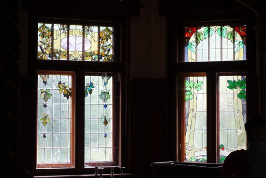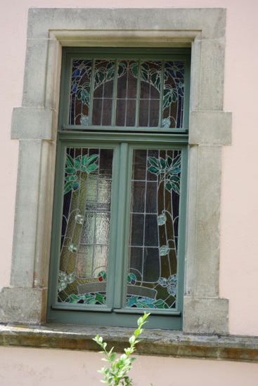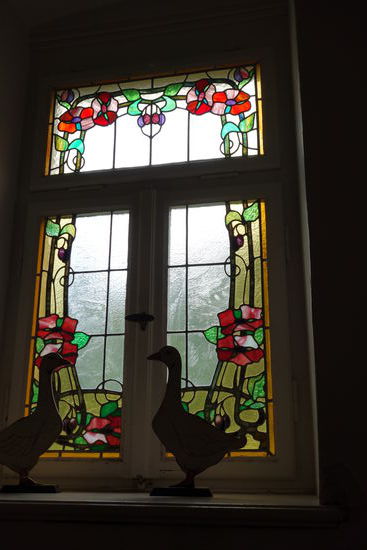 Bei unserem Rundgang können wir noch zahlreiche Fenster mit Jugendstilglas bewundern.
