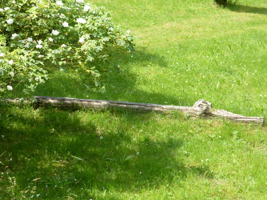 Zum Schluß überrascht uns in der Wiese noch ein Krokodil - gefertigt aus einem Holzstamm.