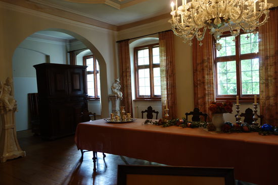Der komplette 1. Stock dient als Museum: Der durchgehende Mittelgang führt an Räumlichkeiten mit verschiedenen Themen vorbei, etwa dem Jagdzimmer mit vielen alten Jagdtrophäen bayrischer Fürsten. Hier ist außerdem ein Zyklus mit Gemälden von Ernst Straßner zu sehen.
