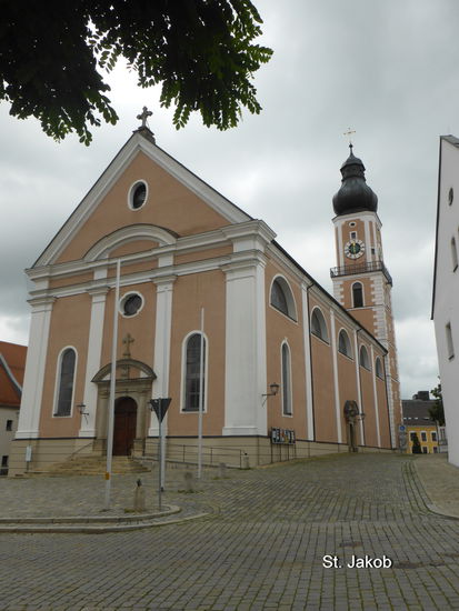 Die Stadtpfarrkirche St. Jakob ist romanischen Ursprungs. Sie wurde im Jahr 1210 zum ersten Mal urkundlich erwähnt. Ihre Fundamente in massivem Bruchsteinmauerwerk und auch die Unterbauten der Türme sind Relikte aus dem 13. Jahrhundert. Der nördliche Turm wurde nicht ausgebaut, sondern mit dem Rathaus verbunden. Der eingezogene Chor wiederum entstand zwischen 1394 und 1411. Die gotischen, zweimal abgesetzten Streben sind bis heute erhalten.