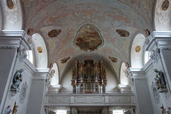 Das Deckengemälde über der Empore wurde um 1899 von Waldemar Kolmsperger gemalt. Es zeigt die Rettung Schiffbrüchiger durch den heiligen Jakobus.