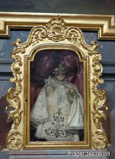 Eine Besonderheit der Kirche ist das sogenannte „Prager Jesukind" im linken Seitenaltar. Es handelt sich dabei um eine alte Kopie einer einstmals berühmten Christkindlfigur, die in der Zeit des ausgehenden Barock als Gnadenbild höchste Verehrung genoss. Das Original ist in der Kirche Maria de Victoria auf der Prager Kleinseite zu finden und stammt ursprünglich aus Spanien. Das „Prager Jesukindl", wie es stets im Volksmund genannt wurde, ist aus Wachs geformt, trägt eine Krone und kostbare Kleidung. Seine rechte Hand ist segnend erhoben, die linke hält einen vergoldeten Reichsapfel.