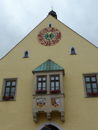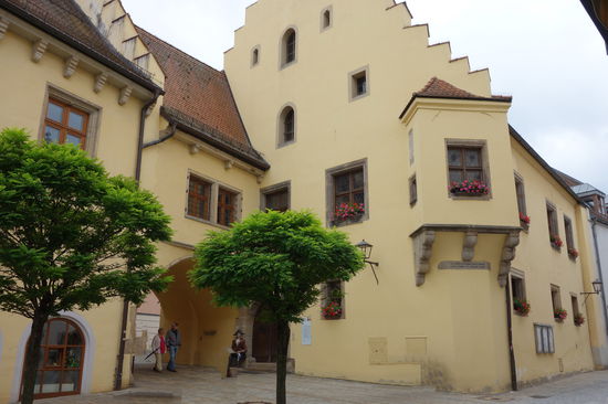 Der östliche und zugleich älteste Gebäudeteil des Rathauses wurde bereits im 14. Jahrhundert urkundlich erwähnt und ist mit dem gotischen Chor der Stadtpfarrkirche St. Jakob baulich verbunden. Der westliche Anbau aus dem 15. Jahrhundert fällt durch seinen Stufengiebel mit Eckerker auf.