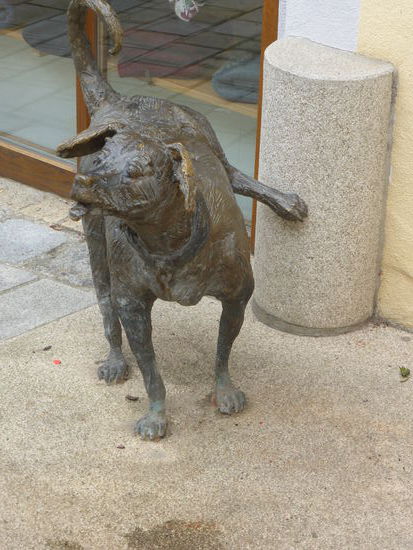 Die Bronzeplastik eines kleinen Hundes schuf 1995 der Eggenfeldener Bildhauer Joseph Michael Neustifter, um an einen ehemaligen Brunnen zu erinnern. Bei der Renovierung des östlichen Rathaustraktes stieß man 1994 auf einen 13 Meter tiefen Brunnenschacht. Dieser Rathausbrunnen war im 19. Jahrhundert noch in Betrieb, wurde dann aber aufgegeben und verschlossen. Es wird die Meinung vertreten, die Wasserstelle habe als so genannter „Gumpbrunnen" („Gumpen" = kleiner, aber tiefer Teich) gedient. Es gibt aber auch *die Theorie, dass es sich um eine Wasserreserve bei Brandfällen handelte.