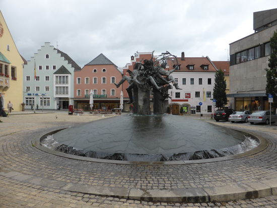 Seit Juni 1995 steht auf dem Marktplatz der Brunnen des Künstlers Joseph Michael Neustifter. Wer sich etwas Zeit nimmt, kann viele überraschende Details entdecken. Die Figur des Grafen Nikolaus von Luckner sieht verschmitzt zum Glockenspiel am Rathausfirst und wartet darauf, dass täglich um 12.05 Uhr die Marseillaise erklingt. Die Waldhexe mit ihren Kindern, welche geschmückt mit Federn, Blumen und Blättern an Mutter Natur denken lässt. Der Bilmesschneider ist eine der bekanntesten bayerischen Sagengestalten. Als einstiges Sinnbild für Missernte und Hunger schritt er mit Sicheln an den Beinen über die Felder, um den Bauern das Getreide abzuschneiden. An diesem Brunnen verkörpert er mit Peace-Zeichen um den Hals Frieden und Fruchtbarkeit.
