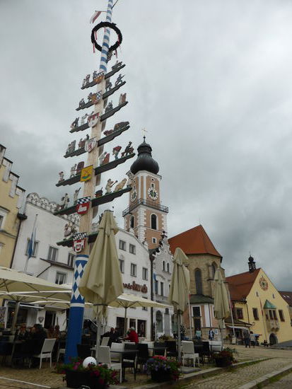 Vom großen Parkplatz vor der Stadt kommend blickt man zuerst auf den Straubinger Turm - einen Wehrturm aus Bruchsteinmauern aus dem 13. Jh. - der eines der wenigen erhaltenen Teile der alten starken Stadtbefestigung darstellt.