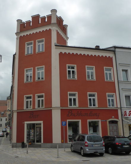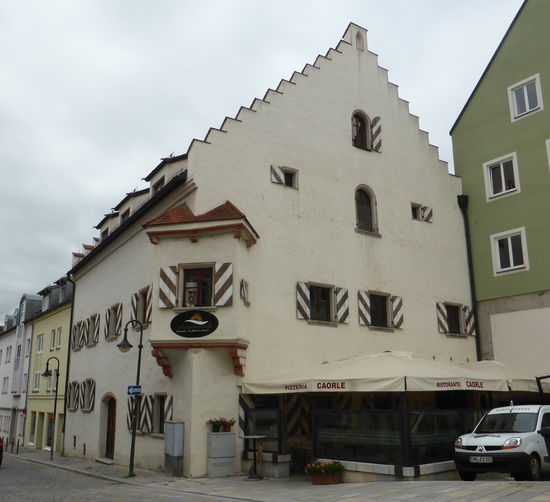 Das einstige Cafe Krone beeindruckt durch seine Fassade. Das Gebäude hat mit seiner über 400 Jahre alten Dachgestaltung ein mittelalterliches Aussehen bewahrt. Seine größten Tage liegen aber schon lange zurück. 1489 versammelten sich hier Adelige des Löwlerbundes, die sich gegen den bayerischen Herzog Albrecht IV. auflehnten. 1615 kehrte der pfälzische Kurfürst Friedrich V. auf dem Weg nach Prag ein. Seine kurze Regierungszeit brachte ihm den Spottnamen „Winterkönig" ein.