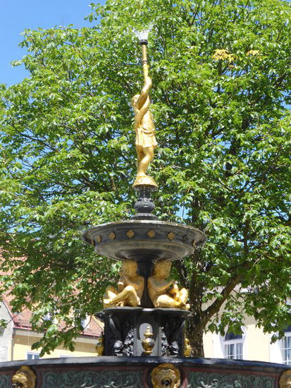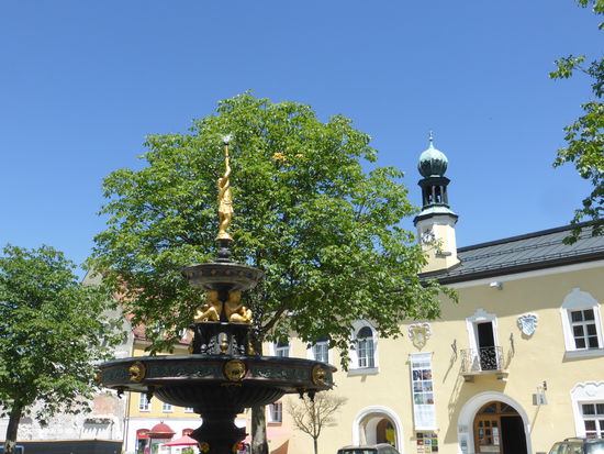 Am großen Stadtplatz stehen einige imposante Gebäude sowie ein hübscher Brunnen