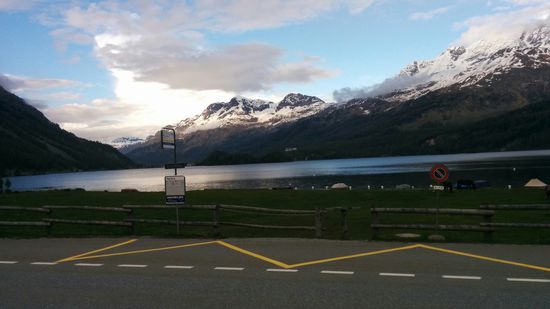 Blick zurück an der Bushaltestelle "Plaun da Lej" am Silser See. Für mich ging's rechterhand weiter gleich anschließend...