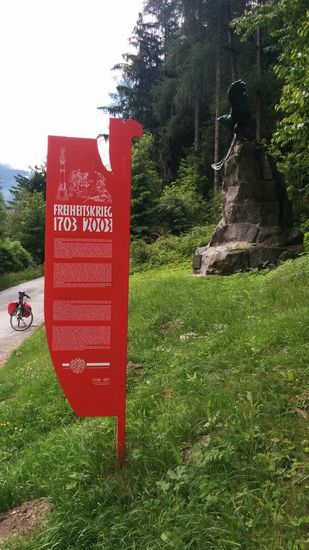 An der Pontlatzbrücke ein Denkmal für die Freiheitskriege von 1703 und 1809 der Tiroler gegen die Bayern und Franzosen.
