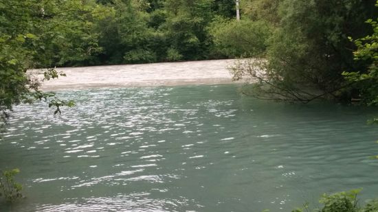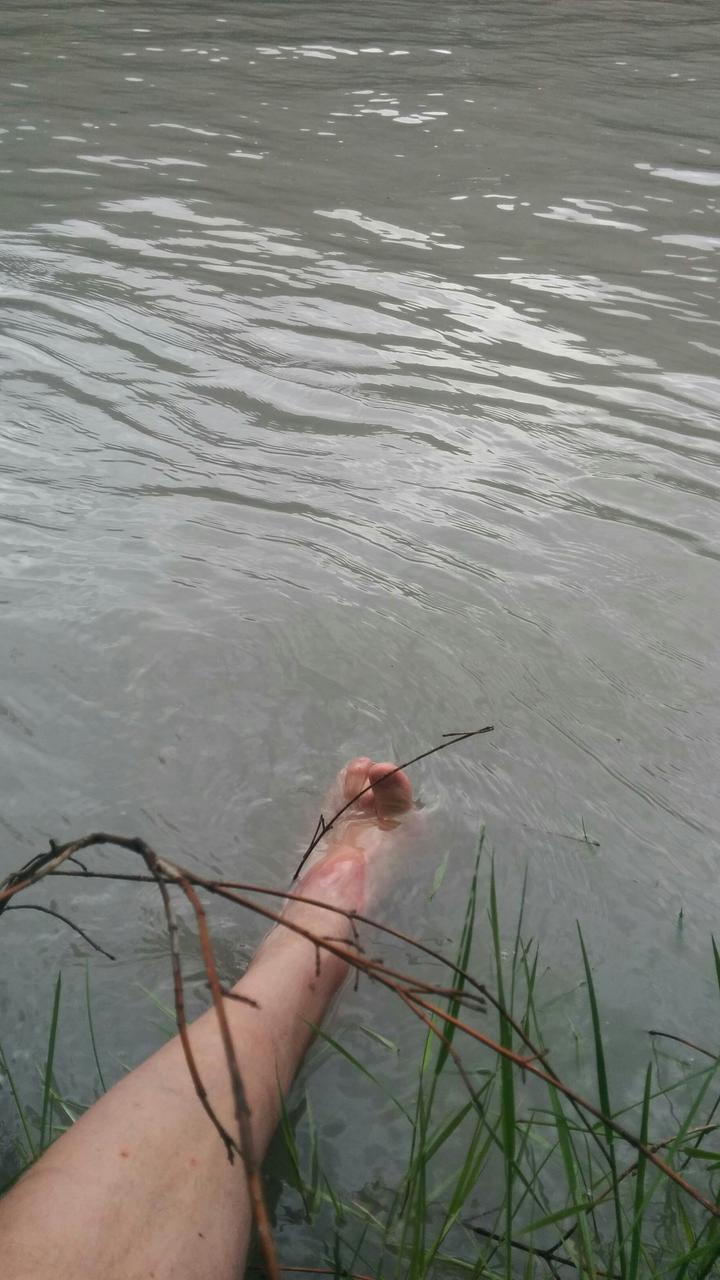 In der Nähe vom "Krippendorf" Inzing am Zirler Berg ist das Innufer trotz des Hochwassers sehr gut und auch GEFAHRLOS zugänglich, um die geplagten Füße etwas abzufrischen.