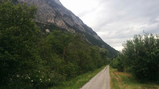 In Prutz wechselte der Radweg von der oberen Seite über die eiserne Brückenkonstruktion zu meinem Standpunkt und verlief dann links des Inns weiter in Richtung Landeck.