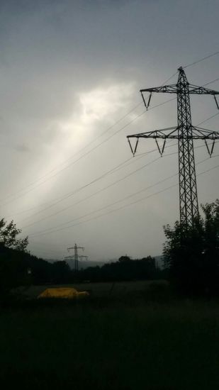 Blick zurück nicht weit von der Startbahn des Innsbrucker Flughafens entfernt mit kleinem Lichtblick neben dem Strommasten.