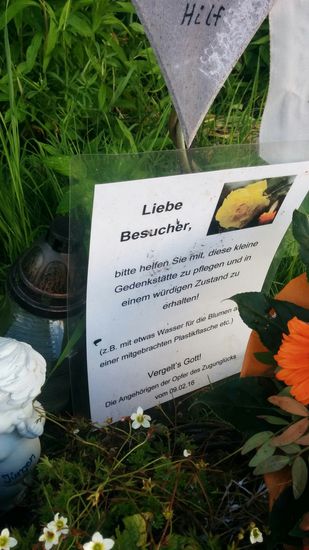 Zwischen Bad Aibling und Kolbermoor eine von zwei privaten Gedenkstätten der schweren Zugkollision vom 9. Februar 2016