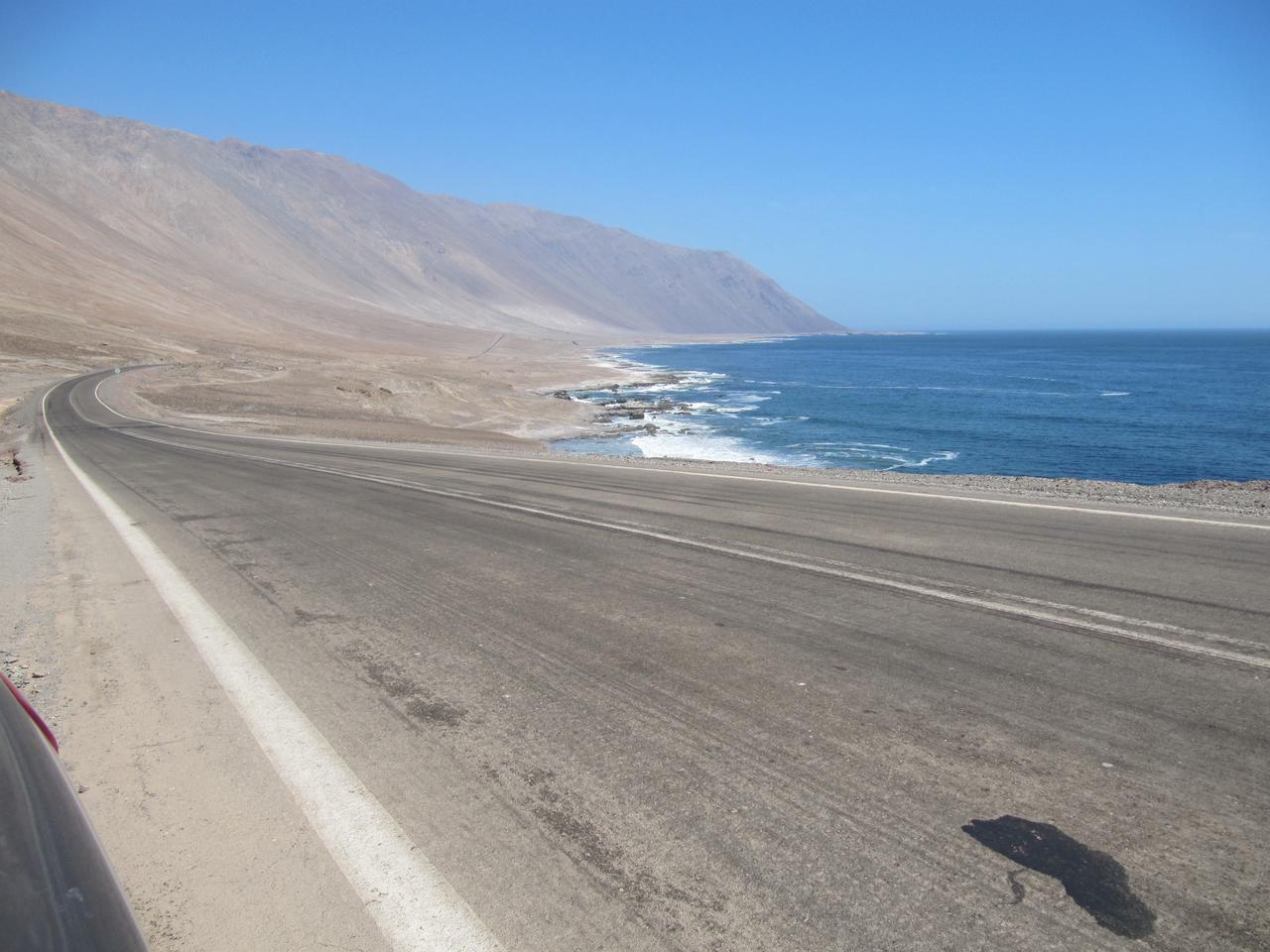Wir fahren nun auf der Ruta 1, der Panamericana in Richtung Norden. Eine der Traumstraßen der Welt, die ihrem Namen wirklich alle Ehre macht. Jede Kurve bietet neue wunderschöne Ausblicke und lässt uns häufig anhalten, um zu fotografieren. Was für uns pittoresk anmutet und sich auf Fotos immer gut macht, sind die Hütten der Einheimischen. Hier herrscht bitterste Armut. Obwohl wir uns an einer der Traumküsten der Welt befinden, gibt es hier praktisch keinen Tourismus, das steckt wohl alles noch in den Kinderschuhen. Allerdings ist sicherlich auch die karge Wüste des auf die Straße folgenden Hinterlandes mit ein Grund dafür, dass es hier nicht mehr Besiedelung gibt. Zwischen Tocopilla und Iquique sehen wir nur ein kleines Örtchen oder ein paar ärmlich aussehende Feriensiedlungen.