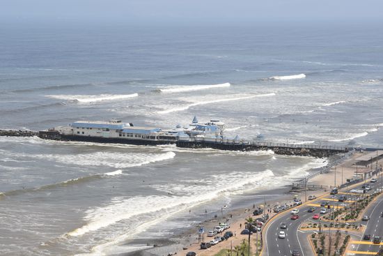 Der Strand ist nicht besonders schön, sondern eher schmutzig. Allerdings ist Larcomar ein tolles ganz modernes Einkaufszentrum, das mit Shops und Restaurants alles bietet, was man sich nur wünschen kann. Wir beobachten ein paar Paraglider, die in großer Anzahl hier herumfliegen. Die Thermik scheint dicht über dem Strand besonders tragfähig zu sein. Die Geschäfte sind hübsch und sehr gepflegt. Larcomar scheint noch nicht alt zu sein.