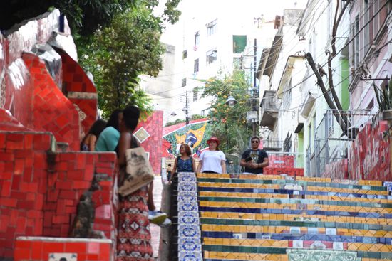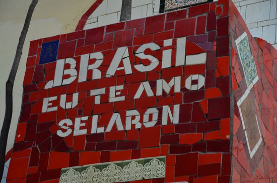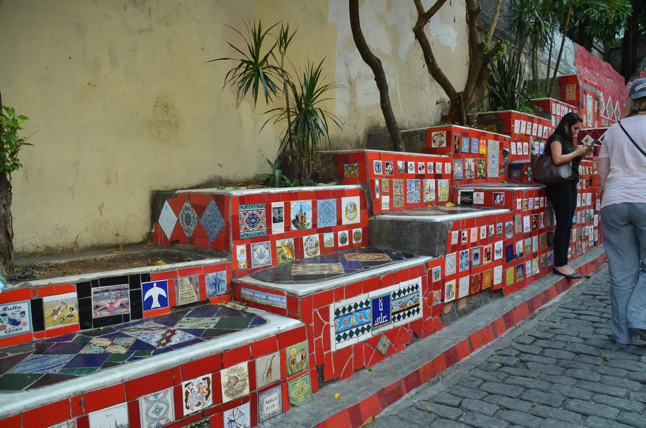 Nun bleibt eigentlich nur noch die Fahrt ins Centro, in dem wir die wunderschöne Treppe des Künstlers Selarón anschauen möchten. Anlässlich der Fussball-WM 1994 hat er diese Treppe mit 215 Stufen mit mehr als 2000 Keramikkacheln gefertigt. Es zählt zu den großen Kunstwerken Brasiliens und so zu einer der touristischen Attraktionen Rios.