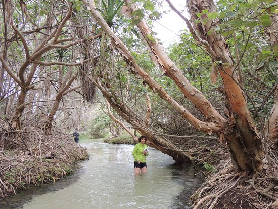 Es geht weiter zum Eli Creek. Auf einem Bohlenweg laufen wir den Fluss entlang und durch den Fluss waten wir wieder zurück, ein Mordsgaudi.