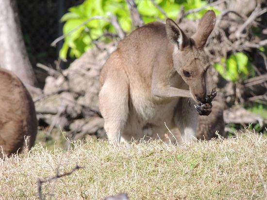 Am See sehen wir viele Tiere und endlich auch Kängurus. Es ist zu schön ihnen zuzuschauen, deshalb bleiben wir ziemlich lange hier.