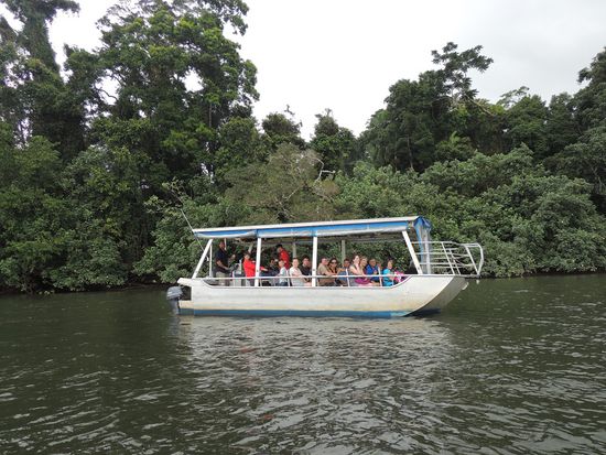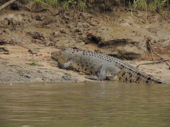Trotz des nassen Wetters machen wir uns auf den Weg zum Daintree Nationalpark. Da wir nun schon so viele Waldwanderungen unternommen haben, lockt uns eine Bootstour auf dem Daintree River. Hier soll es Krokodile geben. Mal sehen, ob das stimmt. Gleich nachdem das Boot gestartet ist, sehen wir einen riesen Schlaps von 5 m am Ufer liegen. Wow, wir sind beeindruckt! Gleich darauf treffen wir eins, das im Wasser schwimmt und den Kopf noch oben streckt. Es fängt mächtig an zu fauchen, als wir zu nahe sind. Das flößt Respekt ein und wir treten schnell den Rückzug an. Der Bootsführer achtet auf einen gewissen Sicherheitsabstand, sodass wir merken: So ganz ungefährlich ist das nicht. In dem Fluss scheint es von Krokodilen und Schlangen nur so zu wimmeln, denn wir sehen noch eine ganze Menge. Diese Tour hat sich gelohnt und ist unbedingt zu empfehlen!