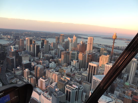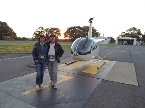 Nun wird es Zeit zum Flughafen zu fahren, denn dort startet der Heli. Wir werden freundlich empfangen, bekommen alles erklärt und warten- eine Stunde. Dann sagt man uns, dass unser Heli kaputt ist und ein anderer vorbereitet wird. Endlich geht es los und wir fliegen. Herrlich!!! Bei klarem Sonnenschein drehen wir eine große Runde über die Stadt. Unglaublich, wie schön Sydney von oben aussieht, super tolle Stadt-die Hochhäuser, die Oper, die Brücke, der Hafen, die Strände, die Steilküste, die Parks......