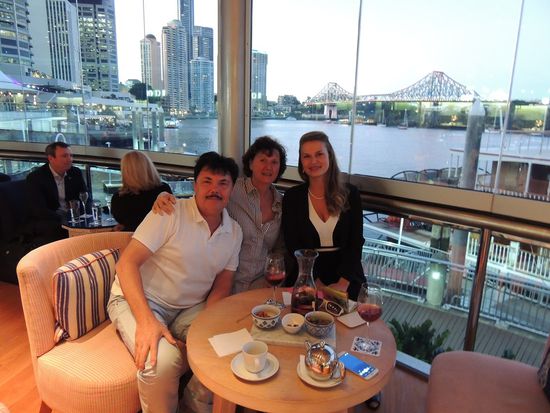 Mit dem Bus 345 fahren wir zur Central Station und sind gleich mittendrin. Der Brisbane River schlängelt sich durch die Stadt. Wir bummeln entspannt immer am Fluss entlang durch das Regenwaldgelände, durch den Botanischen Garten, über Brücken und durch die Hochhausschluchten bis zu unserem Ziel- der Bar Mr. & Mrs. G.