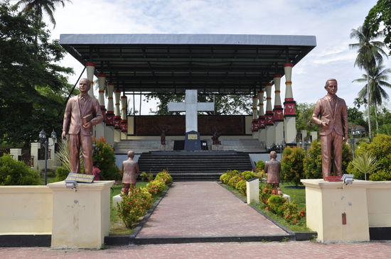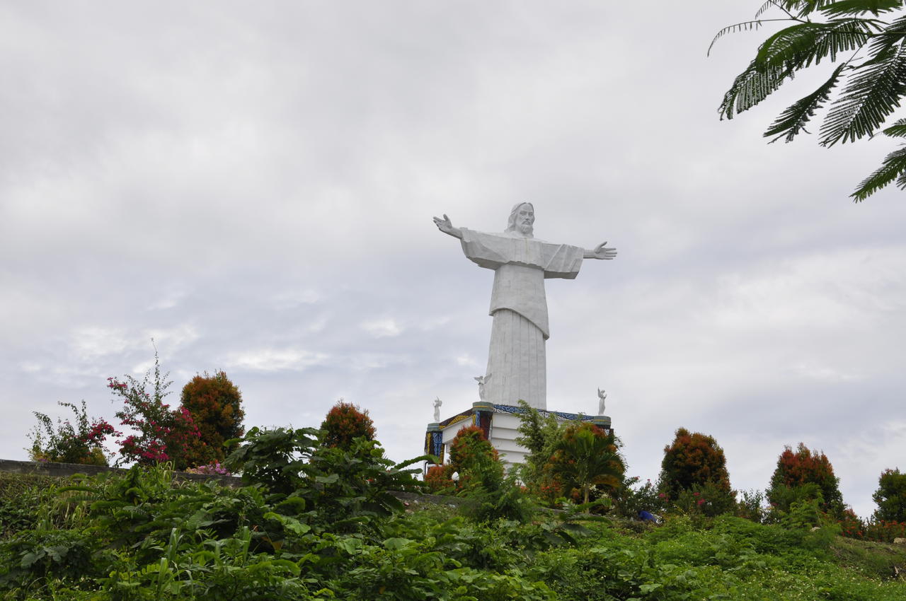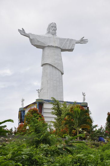 Wir besichtigen erst eine Kirche, treffen eine Reisegruppe aus Fak-Fak (Papua) und dann sind wir bei der Statue. Hier sind einige Leute fleißig am fegen und harken. Es sieht akkurat sauber aus.