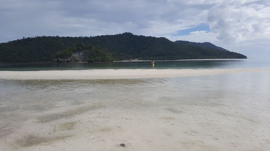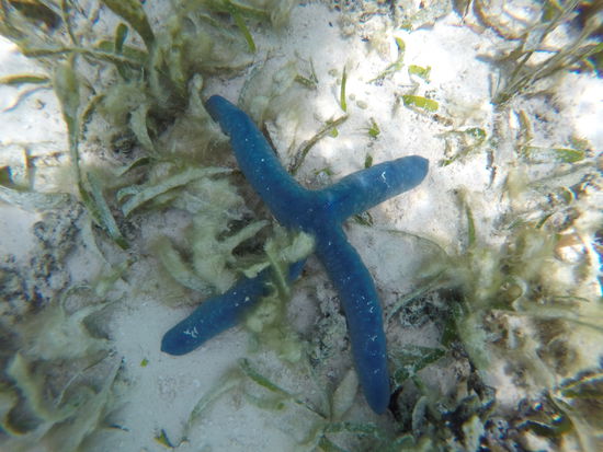 Es ist Ebbe und Thalia geht ans Riff und schnorchelt zurück, ich laufe durch Wasser, bzw am Strand entlang.