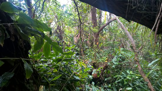 Vom Zyklon umgeworfene Tamarinden bilden Torbögen und wachsen trotzdem weiter. Gelegentlich muss man ganz schön in die Knie. Mit Gepäck später manchmal auf allen Vieren