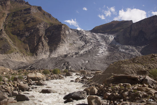 Unterwegs sehen wir Gletscher, die sich bis in den Talgrund erstrecken. Auch fahren wir an einer Eiskathedrale vorbei, unter der der breite, reißende Fluss durchfließt.