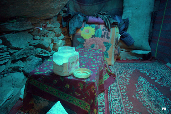 Kurz hinter dem Pass auf über 4.000 Metern stehen ein paar einfache Hütten, die mir auf der Hinfahrt schon aufgefallen waren. Sie sind sehr niedrig, die Wände bestehen aus Steinen, als Dächer fungieren Plastikplanen. Ein sehr einfaches und sicherlich auch entbehrungsreiches Leben.