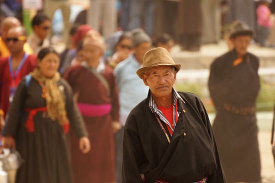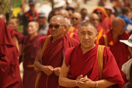 Auf der Fahrt zum Kloster säumen Tausende die Straße und winken uns zu. Sobald sie merken, dass keiner von uns der Dalai Lama ist, hört das Winken aber komischerweise sofort auf.