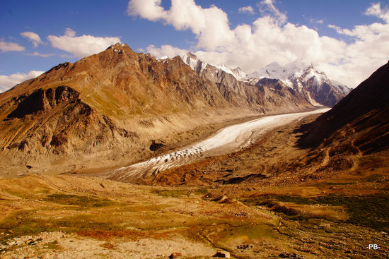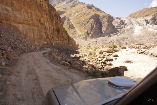 Es geht ein langes fruchtbares Tal hinauf, vorbildlich bewirtschaftete und bewässerte Felder begleiten uns. Immer am Suru-Fluß entlang fahren wir in Richtung Passhöhe. Kurz vorher nehmen wir noch das Rangdum-Kloster mit. Auf der anderen Seite des 4.401 Meter hohen Penzi-Passes geht es am Stod entlang wieder talabwärts.