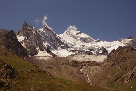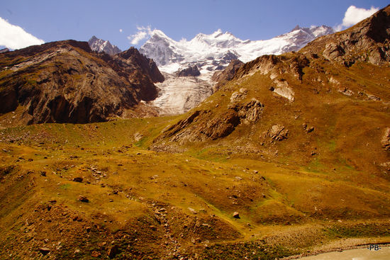 Immer wieder erhaschen wir einen Blick auf die gletscherbedeckten Berge, breits zwei Stunden hinter Kargil etwa auf den 7.077 Meter hohen Kun und den 7.135 Meter hohen Nun, die höchsten Berg in dieser Ecke.