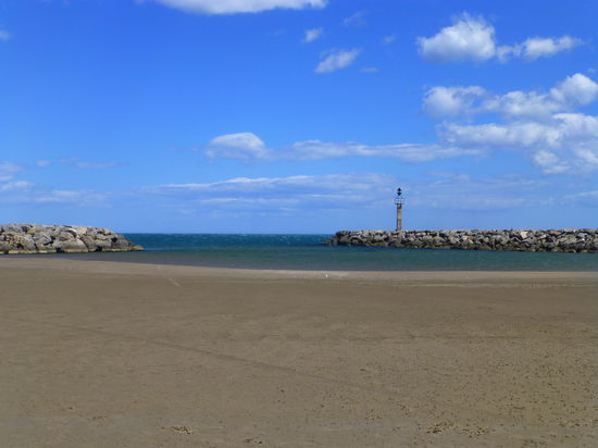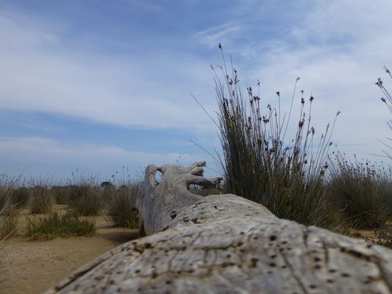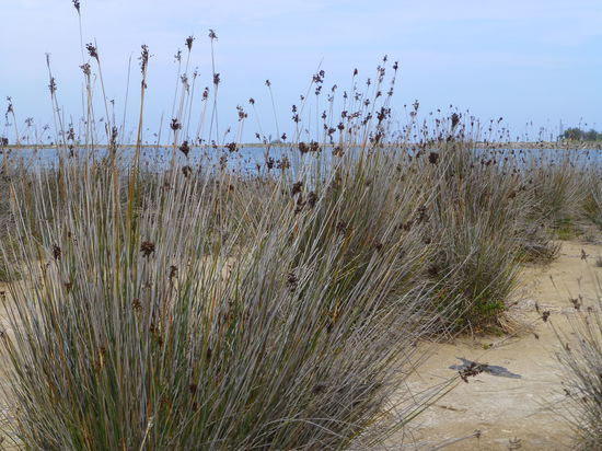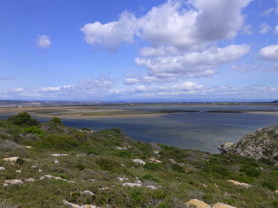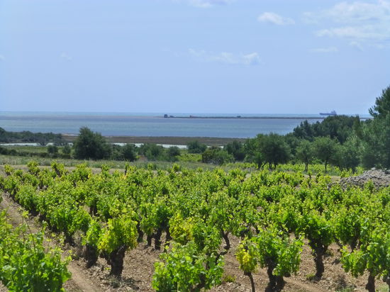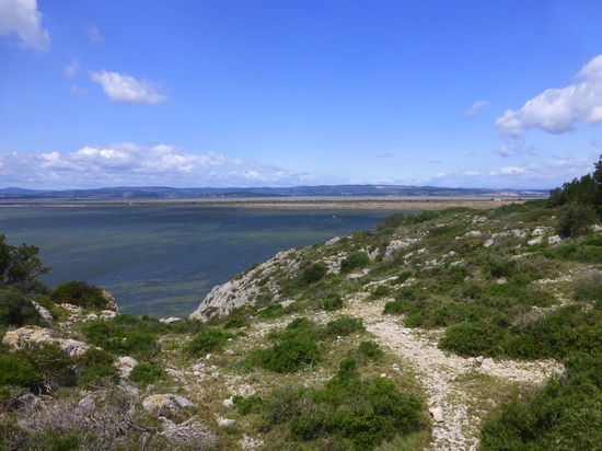 Rund um Gruissan gibt es einige sehr schöne ausgewiesene Wanderwege. Die Tourenbeschreibungen sind im Office de Tourisme erhältlich und wir unternehmen die Tour "Les Goules" ab der Domaine Château Bel Évêque, dem Weingut des Schauspielers Pierre Richard. Zunächst geht es entlang der Etangs und dann über ein Felsplateau entlang der Küstenlinie. Schließlich durch einen Wald und vorbei an Weinbergen wieder zurück. Diesmal finden wir auch den richtigen Abzweig, so dass es eine relativ kurze, wenn auch leicht anstrengende Tour von rund 2 Stunden wird.