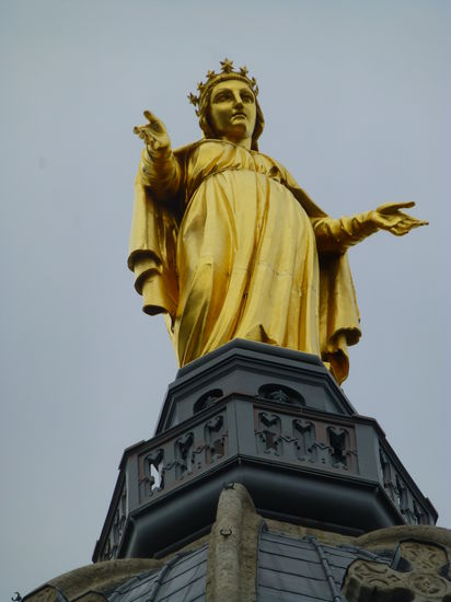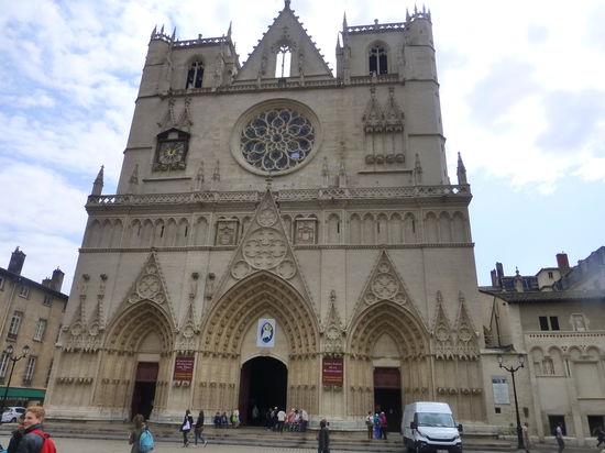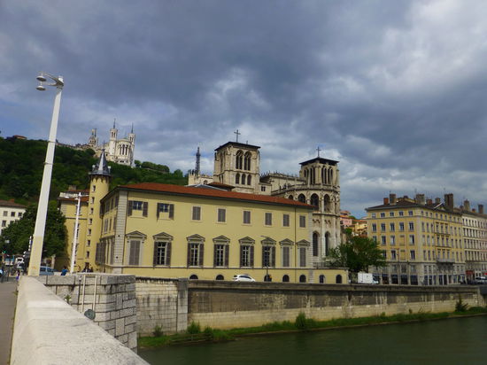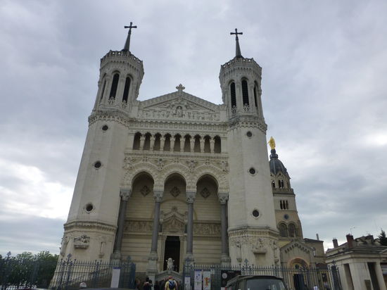 Jahrelang sind wir auf unserem Weg in den Süden an Lyon vorbei, drumherum oder quer durch gefahren ohne die Stadt auch nur eines Blickes zu würdigen. Irgendwie waren wir immer daran interessiert, wie wir möglichst ohne größeren Stau um diese Stadt herum kommen. Dabei gehört die Altstadt zum UNESCO-Weltkulturerbe, Lyon soll die Hauptstadt der Gourmets sein und überhaupt wird es höchste Zeit, dass wir uns einmal genauer umschauen. Deshalb stellen wir uns für den heutigen Stadtausflug den Wecker. Pünktlich um 10.00 Uhr nehmen wir bei strömendem Regen den Bus in Richtung Centre Ville. Doch als wir eine Stunde später nach problemloser Fahrt mit Bus, Metro und Funiculaire auf dem "Sacre Coeur" von Lyon - der Basilique Notre-Dame de Fourvière - stehen, hört der Regen auf und die Wolken reißen langsam auf.