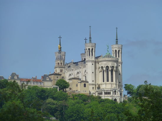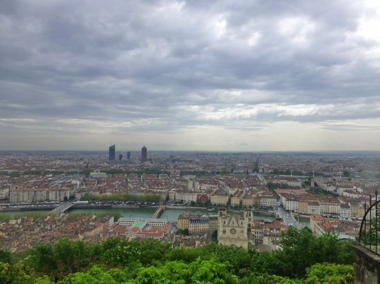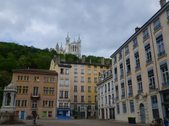 Von hier oben haben wir eine grandiose Aussicht über Lyon und können uns einen ersten Überblick verschaffen. An schönen Tagen soll der Blick wohl bis zum Mont Blanc reichen. Heute nicht, aber es ist trotzdem toll.
