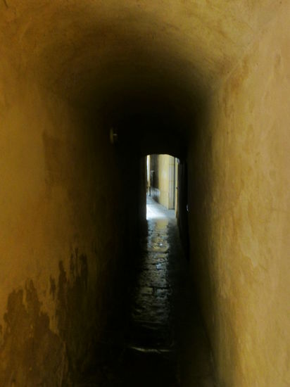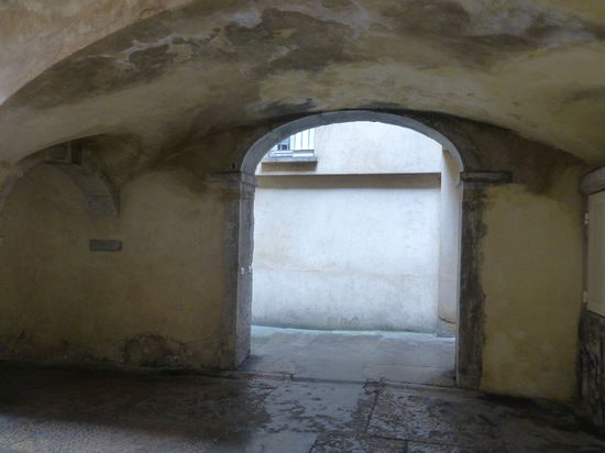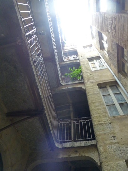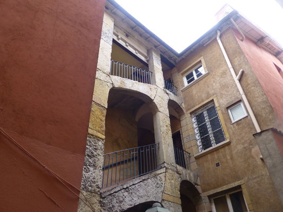 Zu Fuß geht es anschließend über steile Treppen und Wege durch einen Park hinunter in die Altstadt. An der Rezeption des Campingplatzes haben wir uns die Beschreibung eines Stadtspaziergangs mitgenommen, in dem wir auf die sogenannten "Traboules" hingewiesen werden. Damit gemeint sind versteckte Gänge und Passagen, die es einst den Arbeitern und Bauern erlaubten, ihre Waren und Stoffe vor Regen geschützte durch die Stadt zu transportieren. Außerdem wurden die Traboules genutzt, sich im Verborgenen durch die Stadt zu bewegen. Beispielsweise während des Zweiten Weltkrieges durch die Résistance. Wäre im Plan nicht der Eingang durch eine ganz normale und unscheinbare Haustür zu einem dieser Traboules erwähnt worden, wir hätten diesen Gang nie gefunden bzw. uns gar nicht erst getraut, einfach in den Hinterhof hinein zu spazieren. So jedoch genießen wir diesen Streifzug "hinter den Kulissen", nicht wissend, was uns hinter der nächsten Biegung des dunklen Ganges erwartet.